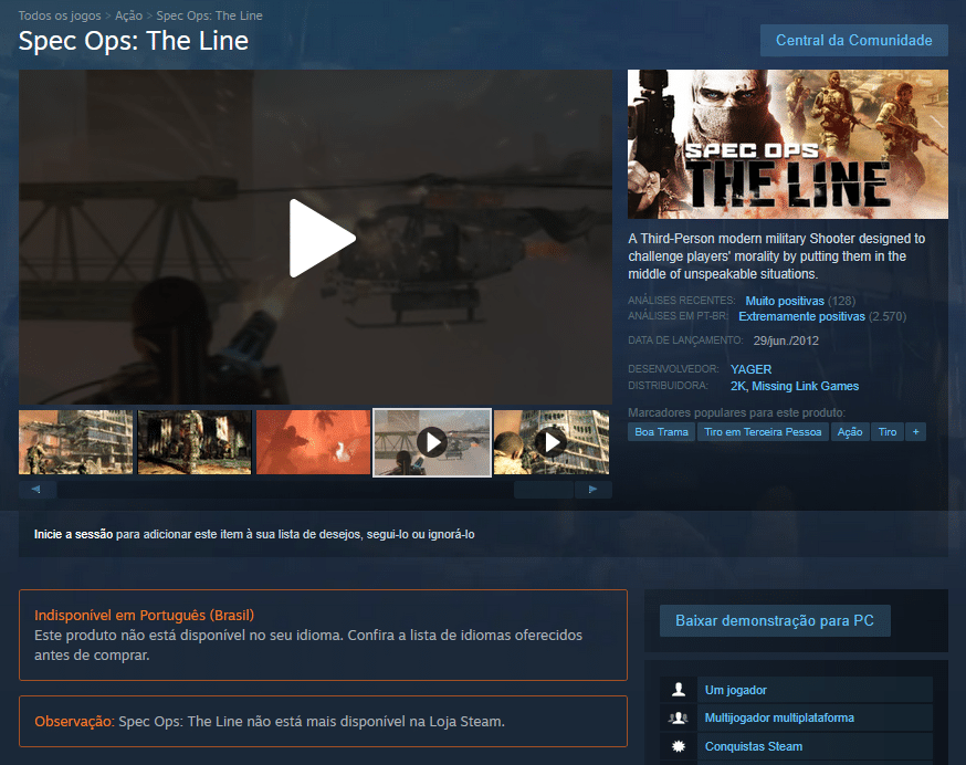 Mais de uma década após o lançamento, Spec Ops: The Line ainda desafia o jogador com inimigos e dilemas existenciais. Isso, por si só, já justificaria sua presença nas plataformas digitais principalmente a GOG. Ironicamente, porém, o jogo saiu da Steam e de outras lojas em janeiro de 2024.