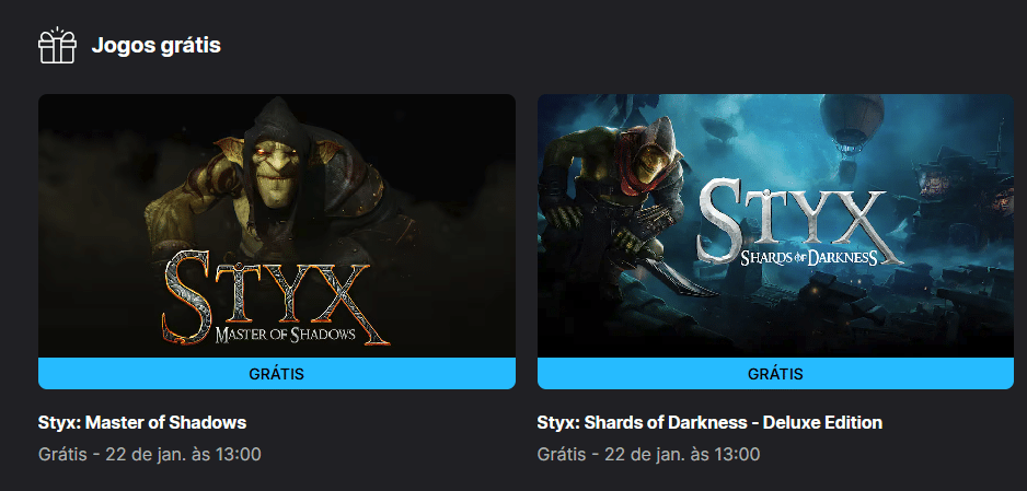 - Abra a seção de jogos grátis da semana e encontre Styx: Master of Shadows e Styx: Shards of Darkness.